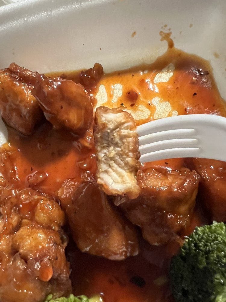 Lightly battered white meat chicken, wok stirred in spicy honey sauce.